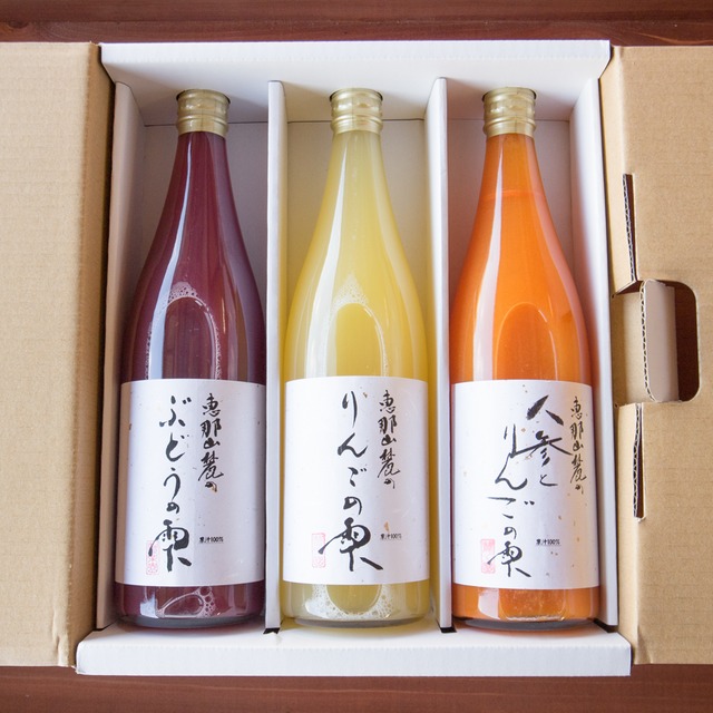 【3本セット(ぶどう・りんご・人参)】プレミアムジュース恵那山麓の果物の雫