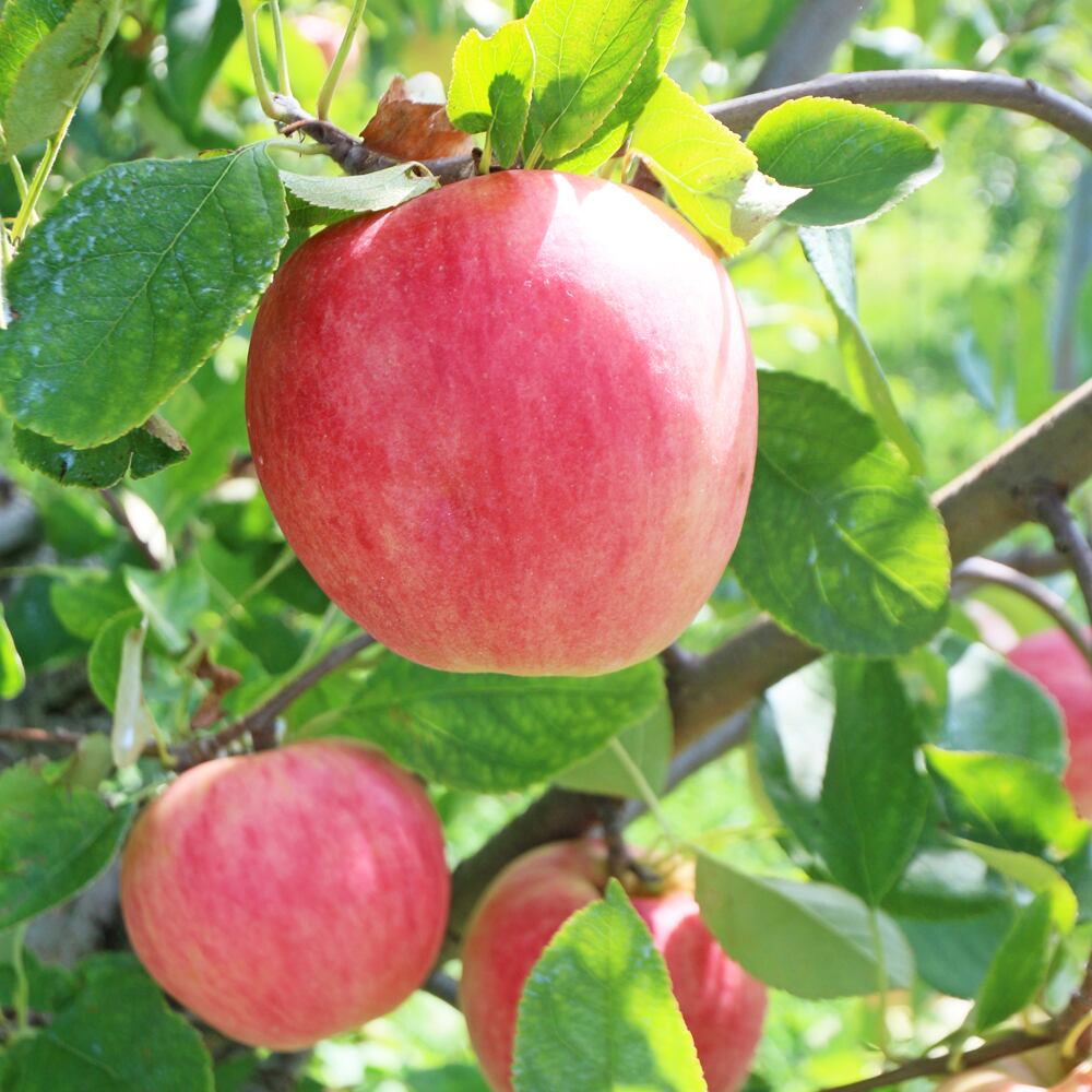 夏りんご "さんさ"。この地域では珍しい品種です。サクッとした軽やかな食感とりんごらしい甘酸っぱさが暑い夏にぴったりの、美味しいりんごです。